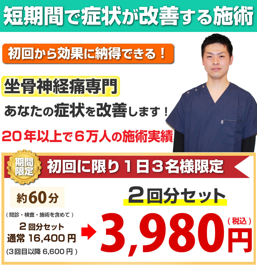 原因は様々ですが、お尻にある筋肉が凝り固まって血流が悪くなり、坐骨神経痛になることがあります。